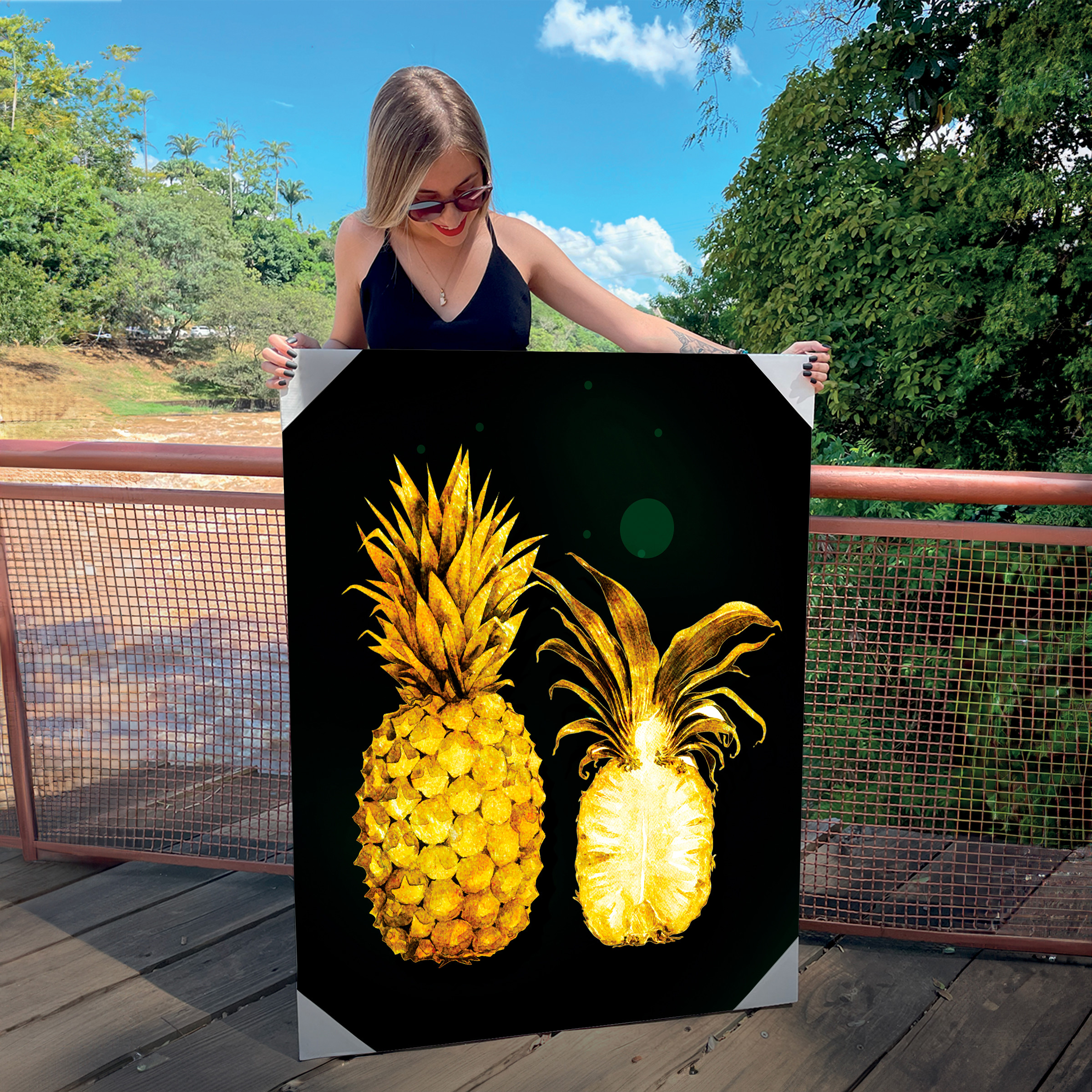 Quadro Decorativo Canvas Botânico Abacaxi Dourado Vertical