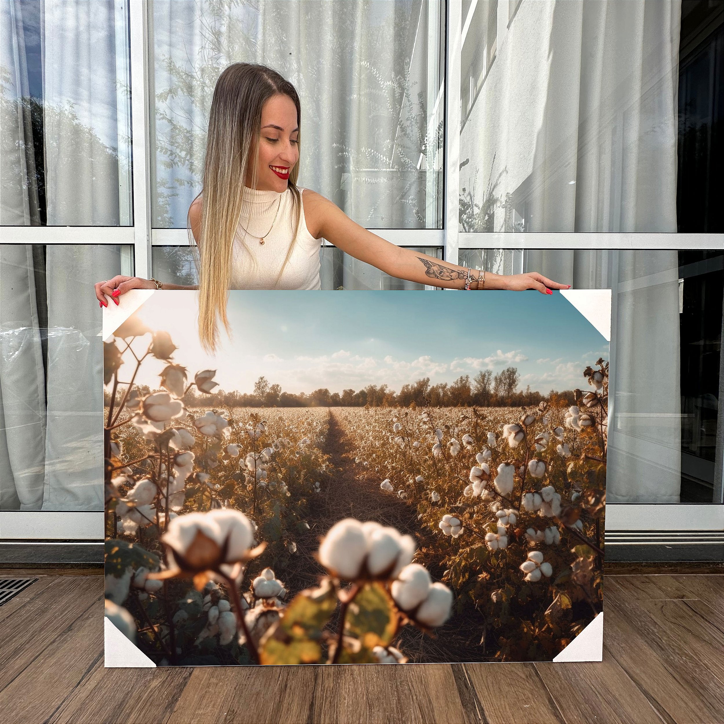 Quadro Decorativo Canvas Paisagem de Grande Campo de Plantação de Algodão Horizontal