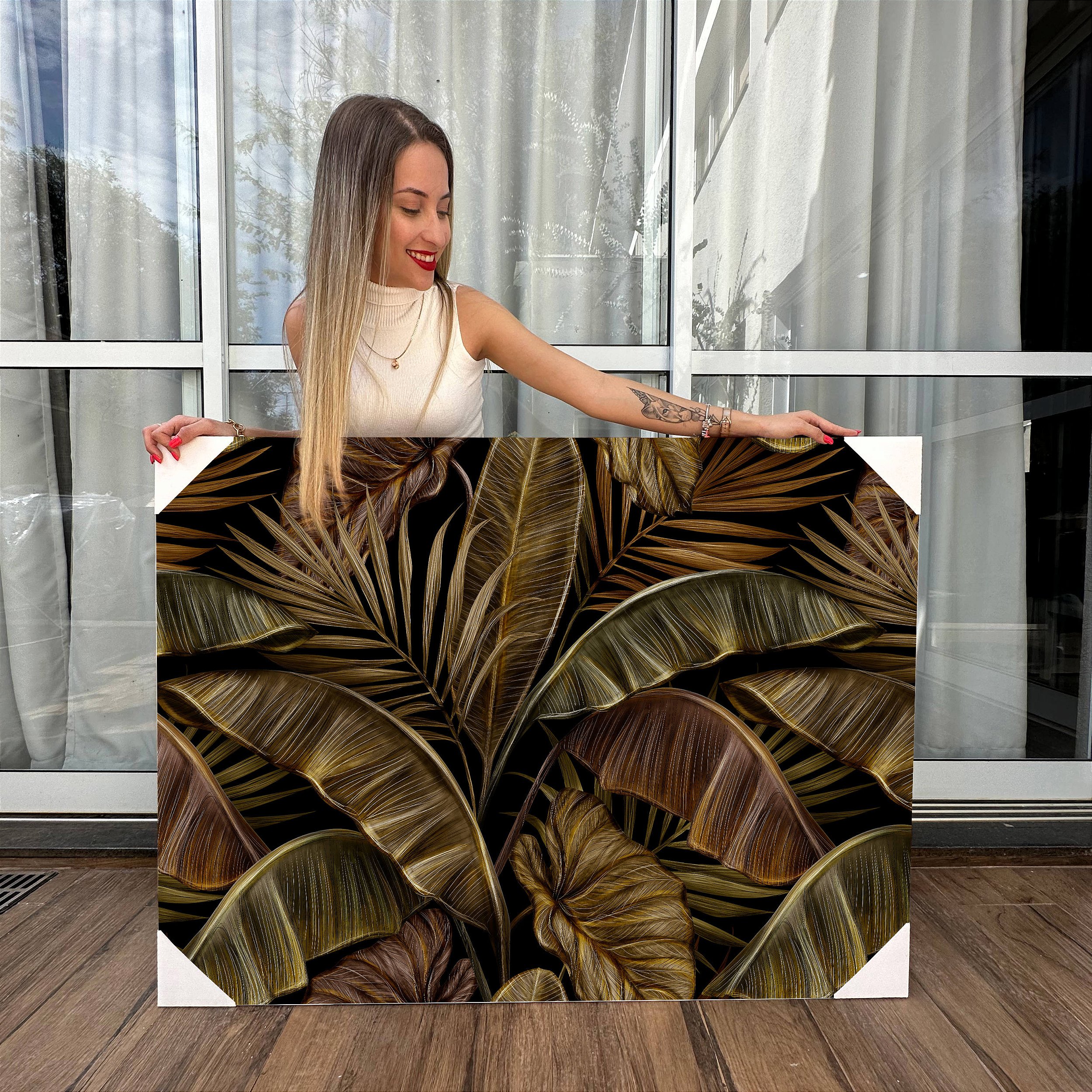 Quadro Decorativo Conjunto de Folhas Bronze e Dourado Horizontal